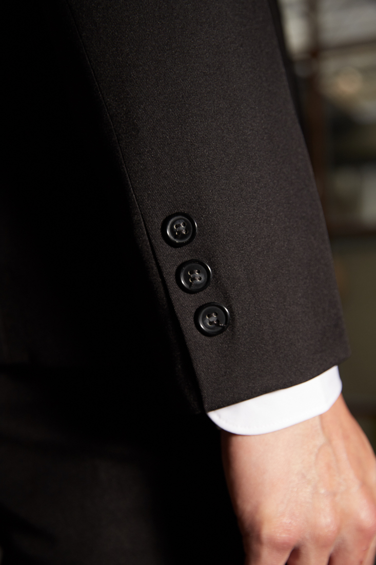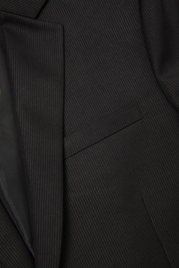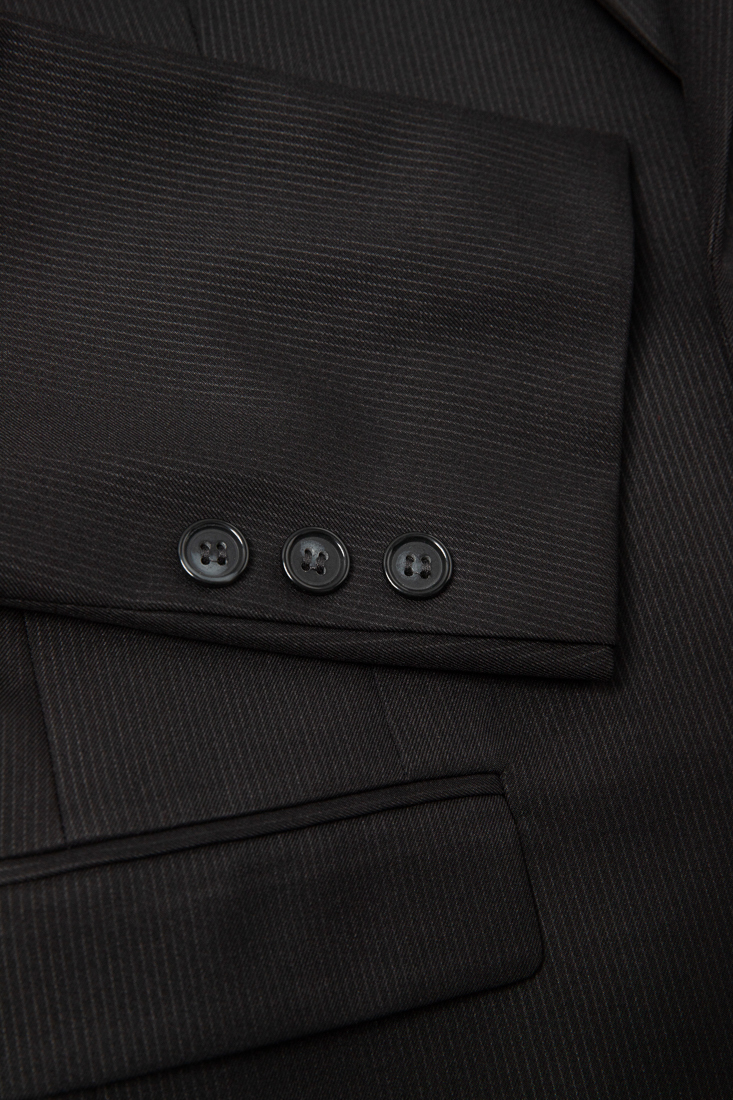 此款西裝外套有黑色素面與黑色直條紋兩款面料,以下為黑色直條紋面料細節